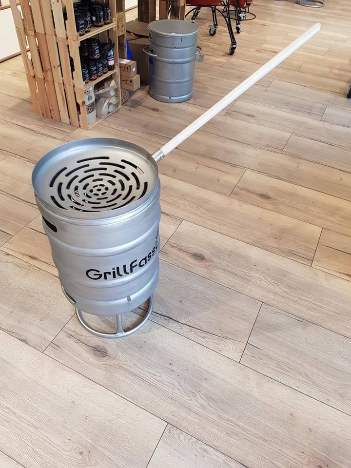 Wie das GrillFassl, ist auch der Kastanienofen aus einem echten 50 l Edelstahlbierfass hergestellt. Mit seinen drei Beinen steht er fest auf dem Boden. Einmal mit Holz befeuert, verbreitet das Feuerfass aufgrund der durch den eingeschnittenen Schriftzug leuchtenden Flammen eine angenehme Stimmung. Verwenden Sie ihn zum Kastanienbraten ode einfach nur als Feuerfass.